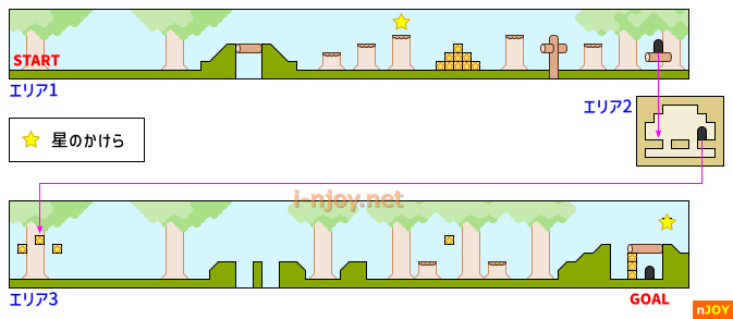 | 星のかけら | エリア1に1個 エリア3に2個 | |